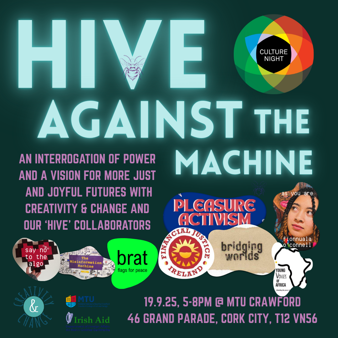 Hive Against the Machine: An interrogation of power and a vision for more just and joyful futures with Creativity & Change and a selection of our 'Hive' of collaborating artists.