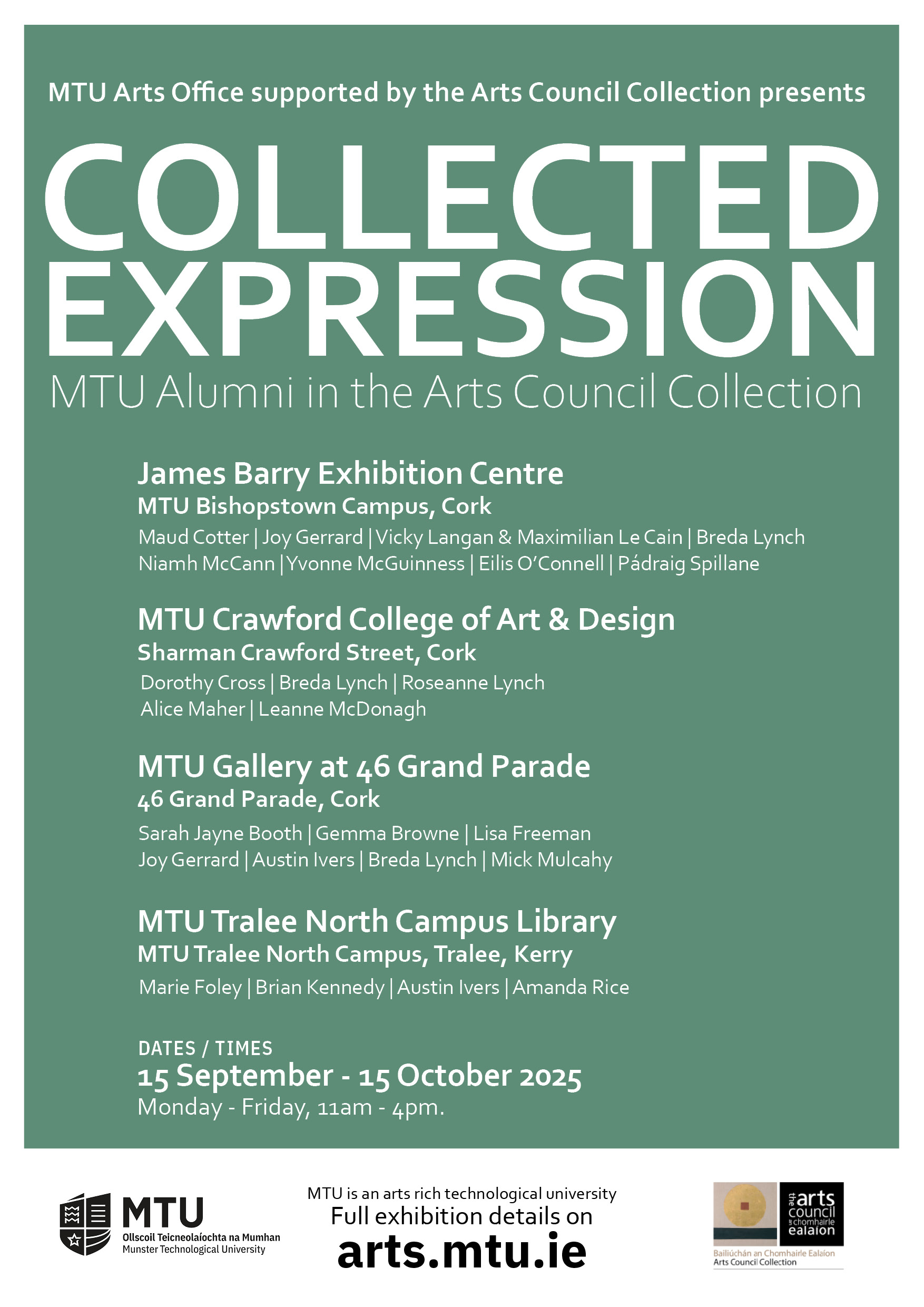 MTU Arts Office supported by the Arts Council Collection presents an exhibition of works by MTU Crawford College of Art & Design (CCAD) alumni in the Arts Council Collection, celebrating the rich legacy and cultural impact of MTU alumni.