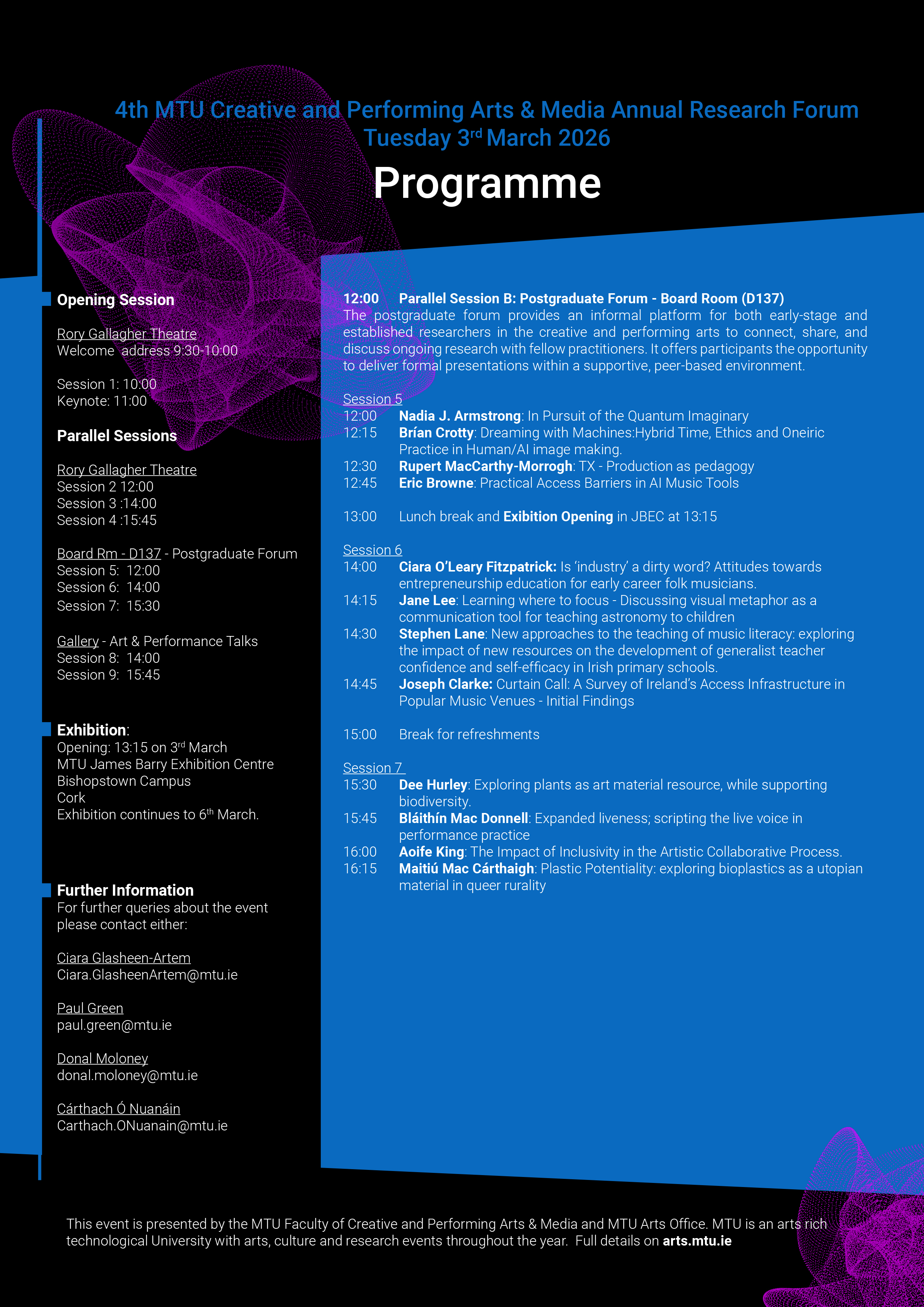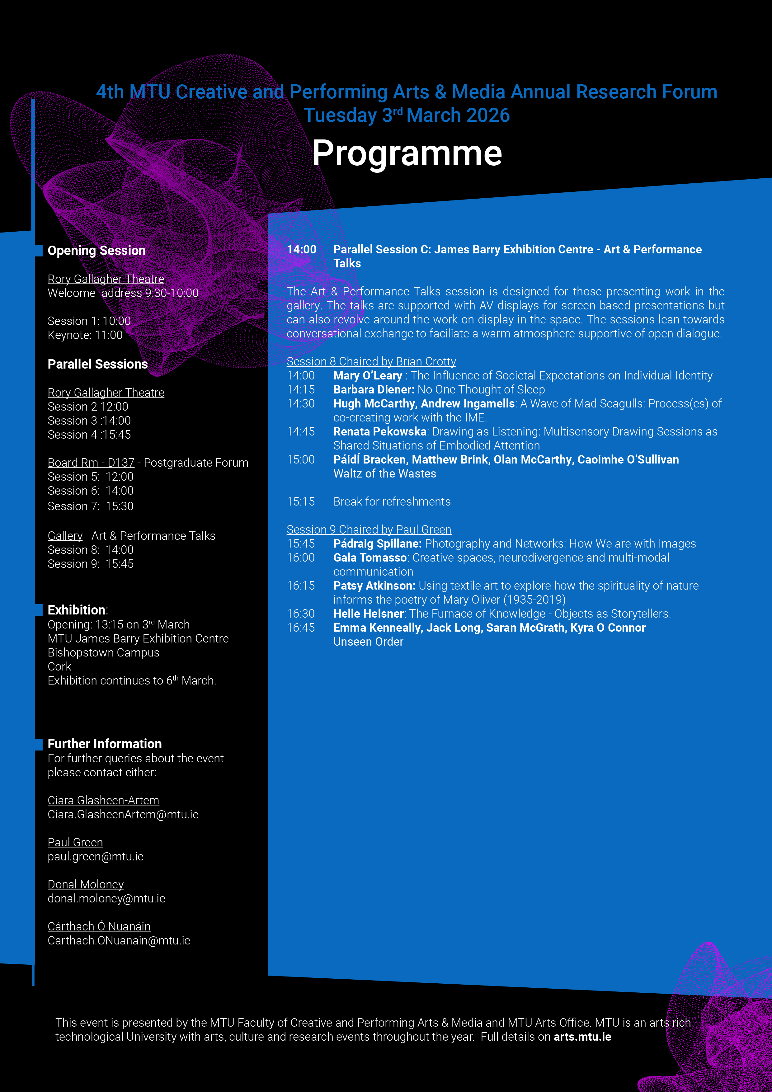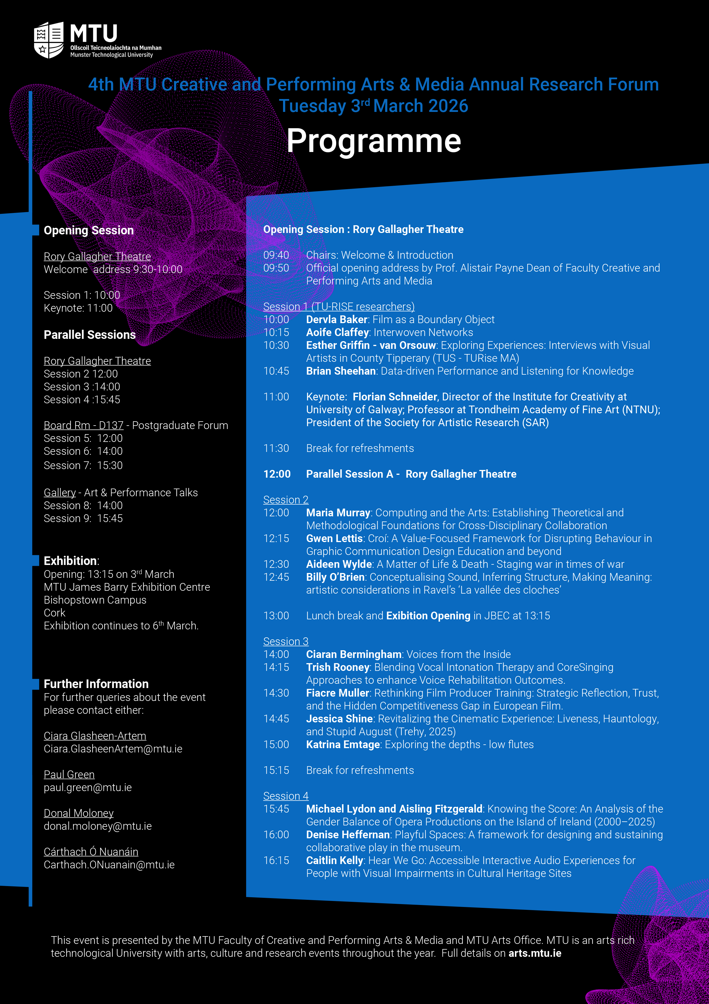 4th MTU Creative and Performing Arts & Media Annual Research Forum & Exhibition Programme