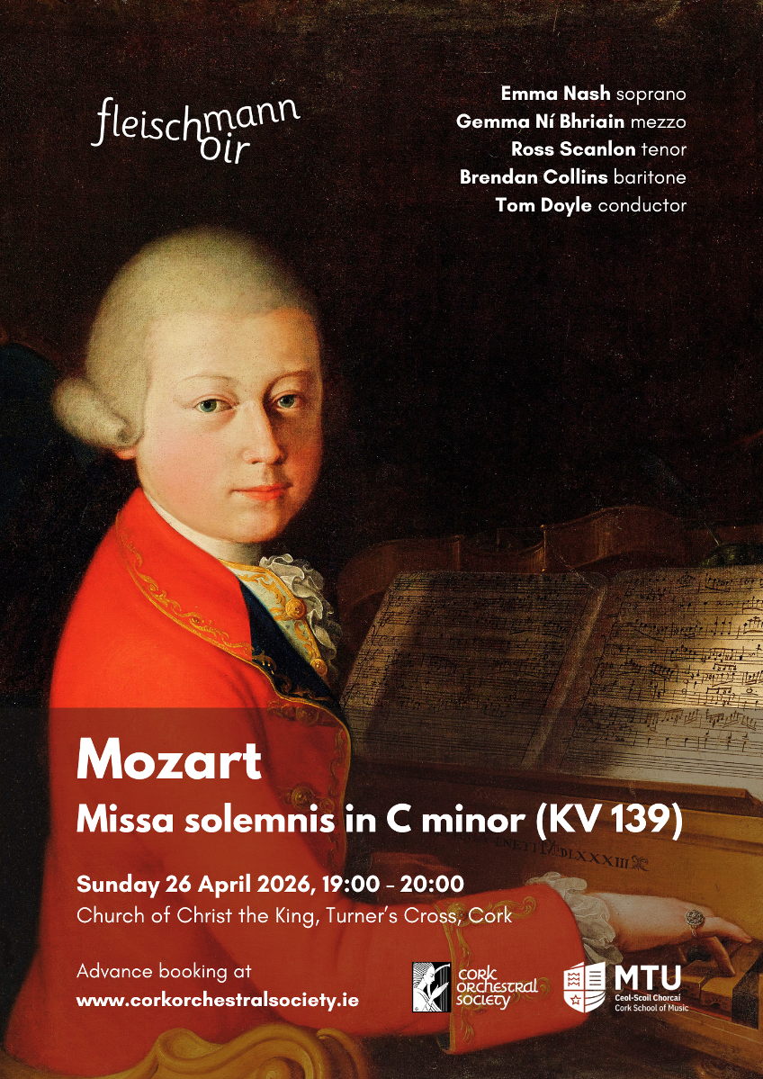 Under the direction of Tom Doyle, and guest soloists Emma Nash, Gemma Ní Bhriain, Ross Scanlon and Brendan Collins present Mozart’s Missa solemnis in C minor (KV 139), written for the consecration of a new orphanage church, and Schubert’s rousing Magnificat in C major (D 486).