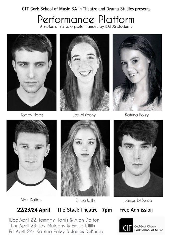 A Series of 6 solo performances from students of the BA Theatre and Drama Studies (BATDS) at CIT Cork School of Music.